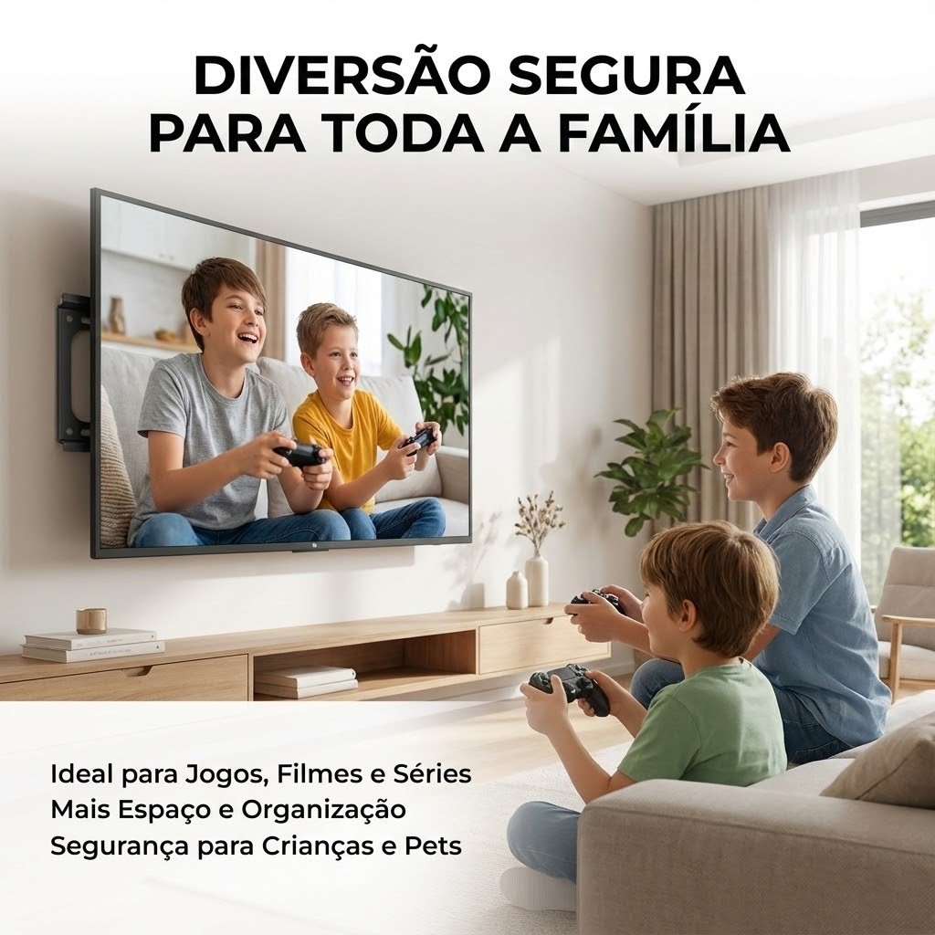 Suporte Fixo De Parede Para Tv 40 A 85 Samsung Lg Sony Philco Philips Tcl Painel Universal LED LCD QLED Todos Modelos De Televisão Com Aço Reforçado Instalação Segura Pratica Fácil Suporta Até 75kg Swave O Suporte de Parede Universal para TVs e Monitores é a solução ideal para quem busca segurança, praticidade e um acabamento moderno na instalação de televisores. Compatível com TVs e monitores de 32 a 85 polegadas, suporta até 75 kg com total estabilidade. Fabricado em aço de alta resistência, conta com tratamento anticorrosão e pintura epóxi eletrostática, garantindo longa durabilidade e proteção contra desgaste. Seu design discreto mantém a TV a apenas 4 cm da parede, proporcionando um visual limpo e elegante ao ambiente. Acompanha kit completo de instalação e sistema de encaixe rápido, facilitando a montagem e remoção do aparelho sempre que necessário, sendo indicado para residências, escritórios e ambientes corporativos. Especificações Técnicas: • Compatibilidade: TVs e Monitores LED, LCD, Plasma e QLED • Tamanho suportado: 32 a 85 polegadas • Capacidade de carga: Até 75 kg • Material: Aço de calibre pesado • Acabamento: Pintura epóxi eletrostática com tratamento anticorrosão • Distância da parede: Aproximadamente 4 cm • Peso do suporte: 1,35 kg • Compatível com paredes de alvenaria e painéis de madeira/MDF resistentes • Padrões VESA compatíveis: 100x100 mm até 600x400 mm Dimensões: • Dimensões do suporte: 64 cm comprimento x 19 cm altura x 1,5 cm largura • Dimensões das hastes: 43 cm altura x 2,5 cm largura x 1 cm espessura FAQ (Perguntas Frequentes): 1. Esse suporte serve para qualquer marca de TV? Sim, desde que a TV seja compatível com os padrões VESA indicados e respeite o peso máximo suportado. 2. A TV fica muito distante da parede? Não, o suporte mantém a TV a cerca de 4 cm da parede, com opção de uso de espaçadores. 3. O produto acompanha kit de instalação? Sim, acompanha parafusos, espaçadores e manual de montagem. 4. Pode ser instalado em painel de madeira? Sim, desde que o painel seja resistente ao peso da TV e do suporte. Conteúdo da Embalagem: • 01 Suporte de Parede Universal para TV • 01 Kit de parafusos M5, M6 e M8 • 01 Parafuso M8 específico para TVs Samsung • 01 Conjunto de espaçadores • 01 Manual de instalação Importante: Valor Unitário Imagens Meramente Ilustrativas Não nos responsabilizamos pelo mau uso do produto