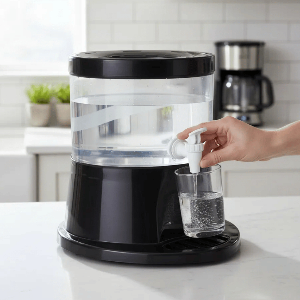 Suporte Galão Dispenser De Agua Garrafao Preto Base Copo Preto Manual