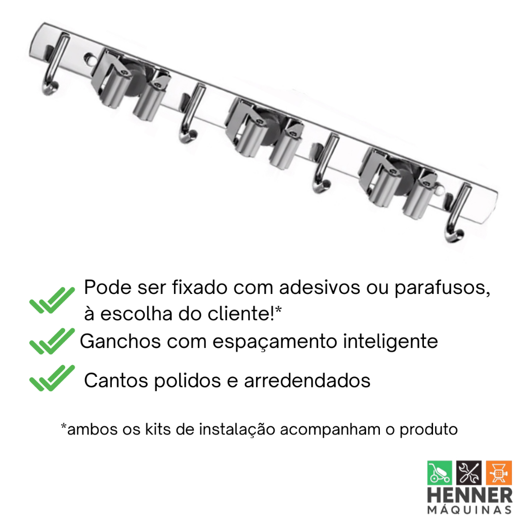 Suporte Gancho Inox Pendurar Vassoura Pá Rodo Mop 7 Posições