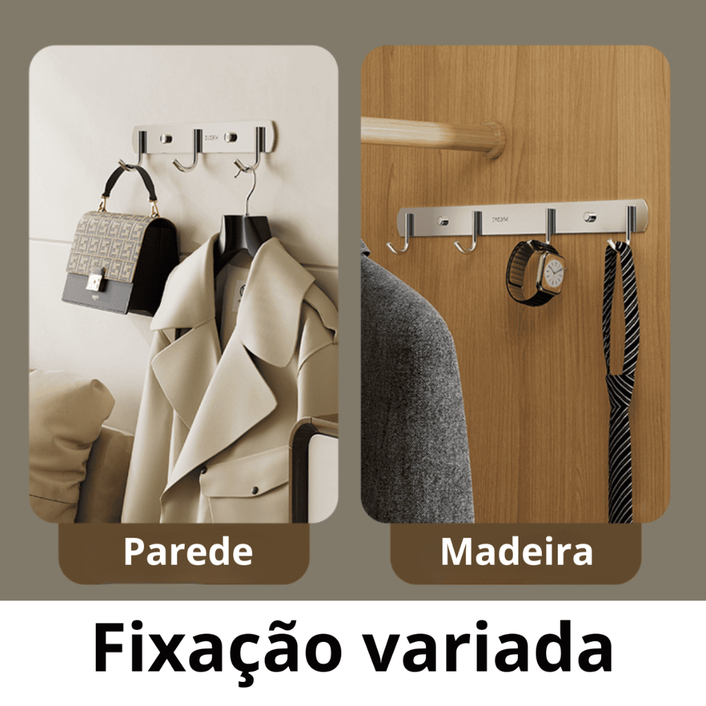 Suporte Gancho De Parede 5 Lugares - É prático e durável utilizado para pendurar itens diversos, como casacos, bolsas, toalhas, chaves e outros acessórios; - Ele foi projetado para ser fixado na parede; - Feito de aço inoxidável, um material conhecido por sua resistência à corrosão e durabilidade; - Design elegante e moderno, combinando bem com diferentes estilos de decoração de interiores.; - O aço inoxidável oferece acabamento brilhante ou escovado, adicionando um toque de sofisticação ao ambiente.; - A instalação é relativamente simples, com duas possibilidade, parafusos ou cola especifica para parede; - São robustos o suficiente para suportar o peso de várias peças penduradas sem ceder ou deformar; - Resistente a manchas e é fácil de limpar, o que torna a manutenção desse tipo de suporte bastante conveniente.; - É uma escolha funcional e esteticamente agradável para manter a organização e a ordem em diversos ambientes, desde hall de entrada até banheiros e quartos; - ESPECIFICAÇÃO TÉCNICA: - Marca: WBCOM - Modelo: Suporte Gancho De Parede Para Todos os Ambientes - Material: Aço Inoxidável - Uso: Parede - Tamanho: 36x3 cm - CONTEÚDO DA EMBALAGEM: - 1x Suporte Gancho De Parede - 1x Kit Fixação