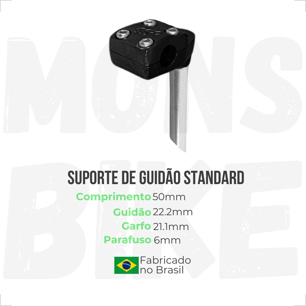 Mesa Bike Mesinha Bicicleta 50mm Modelo Achatado Para Guidão (22.2 mm) Avanço Standard Espiga (21.1 mm) + Parafuso Expander Peça de excelente qualidade ótimo custo benefício. Esse estilo de mesa / suporte é perfeito para você que busca deixar a sua bike ainda mais estilosa e melhor para manobrar. O seu tamanho curto (50mm) deixa o guidão mais próximo ao ciclista, além de deixar a sua bike com ainda mais estilo. A mesa pode ser usada em qualquer modelo de bicicleta que possua as mesmas medidas, como BMX, Cross, entre outros modelos diversos. *Por favor, antes de finalizar o pedido escolha a cor desejada* Especificações Técnicas: -Comprimento: 50mm -Medida Guidão: 22.2mm -Medida Espiga: 21.1mm (Standard) -Medida dos Parafusos: 4 Parafusos para fixação do guidão (Allen 6mm) -Marca: RD -Cores: Preta, Polida, Branca, Amarela, Verde, Azul, Roxa, Rosa, Vermelha, Laranja *Acompanha o Parafuso Expander*