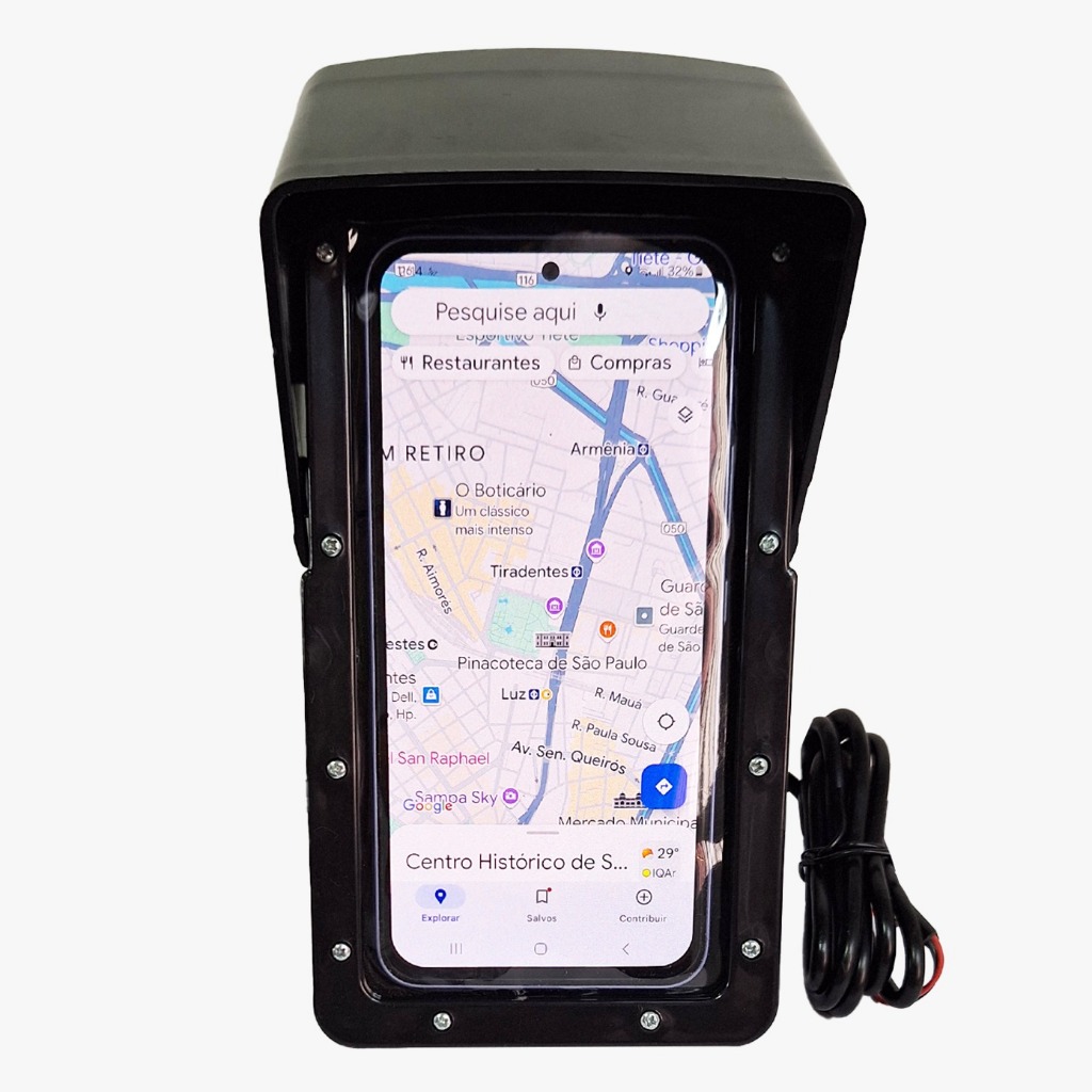 Suporte Impermeável de Celular Moto Com Entrada Usb Street com proteção para sol e chuva