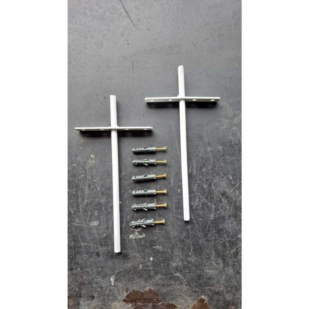Suporte invisivel de embutir , ideal para eixar aquele visual clean e moderno . Material aço redondo 3/8 e chapa de fixação 1/8 Acabamento branco epoxy NAO acompanha parafusos Compra 2 unidades NAO acompanha prateleira imagem ilustrativa
