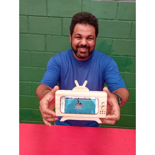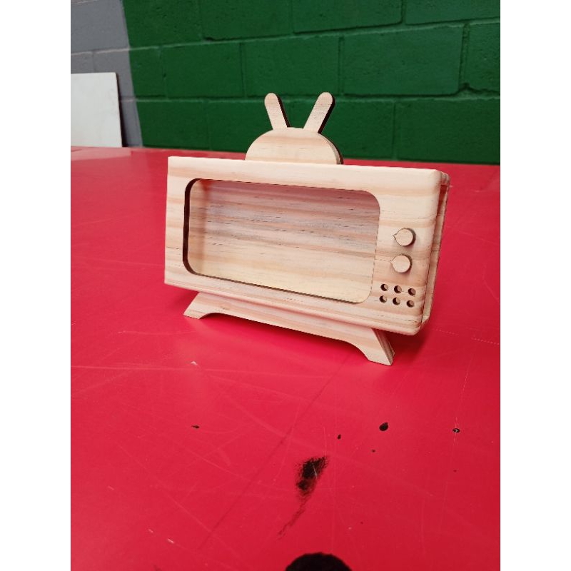lindo suporte de celular em forma de tv ,feito pelo artesão Jones o criativo , este sob encomenda ,aproveite e peça seu lindo suporte em forma de tv retrô do artesão Jones criativo .