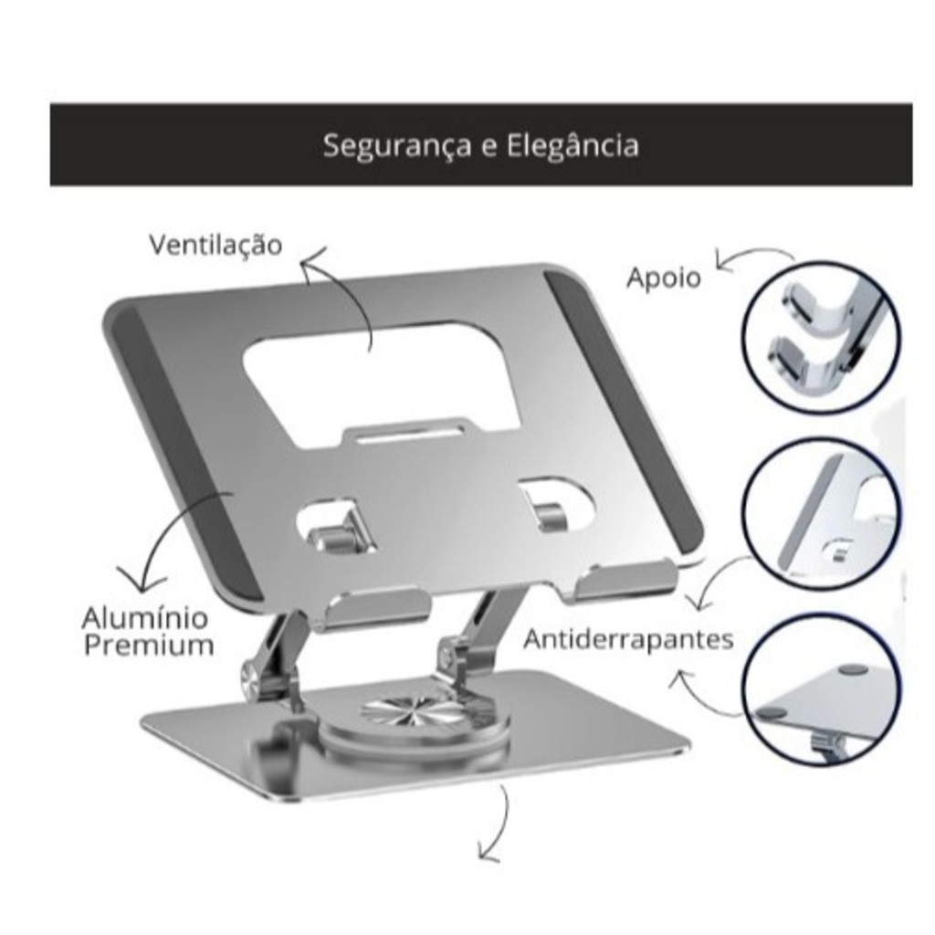 Suporte Para Tablet Mesa Metal Resistente Articulado Suporte de Ipad 9 10 Air Pedestal Portátil Ajustável Dobrável Giratório 360º de Alumínio ✅Construção em Alumínio Premium: Feito com alumínio de alta qualidade, nosso suporte não só assegura durabilidade e estabilidade excepcionais, mas também adiciona um toque de sofisticação ao seu espaço de trabalho com seu acabamento requintado. ✅Suporte Ajustável/Dobrável: Oferece total flexibilidade com ajustes de altura e ângulo, permitindo-lhe encontrar a posição ergonômica perfeita para trabalhar, estudar ou assistir vídeos. ✅Proteção Superior: Equipado com almofadas de silicone para garantir uma aderência segura, protegendo seu dispositivo contra deslizamentos e arranhões. ✅Design Robusto e Resistente: Projetado para resistir ao uso diário, mantendo a estabilidade sem comprometer a qualidade ou a funcionalidade. ✅Suporte Giratório de 360º: A base rotativa permite girar o dispositivo em qualquer direção, facilitando o compartilhamento de conteúdo e ajustando a visualização conforme necessário. ✅Compatibilidade Universal: Perfeito para tablets e celulares de até 13 polegadas, nosso suporte é a escolha ideal para uma ampla gama de dispositivos, oferecendo conveniência e versatilidade. Nosso suporte é perfeitamente compatível com uma ampla gama de dispositivos, incluindo, mas não limitado a, iPad Pro 12.9, iPad Air 10.9, iPad 10.2, bem como tablets Samsung Galaxy Tab, Microsoft Surface Pro ✅Portabilidade Excepcional para Estilo de Vida Dinâmico: Design dobrável e leve, nosso suporte é a escolha ideal para quem precisa de mobilidade. Facilmente transportável, cabe em bolsas e mochilas, permitindo que você leve a conveniência e a funcionalidade para qualquer lugar, seja para o escritório, aulas remotas ou viagens. Desfrute de uma solução de suporte onde quer que você esteja, sem comprometer o espaço ou o conforto.