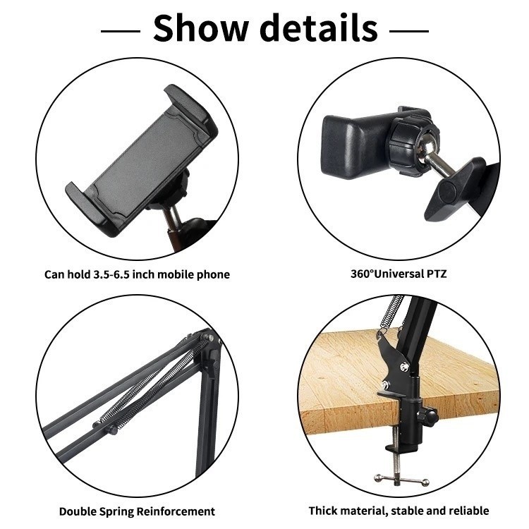 Suporte Microfone/Celular Com Braço Articulado E Ajustado Para Mesa