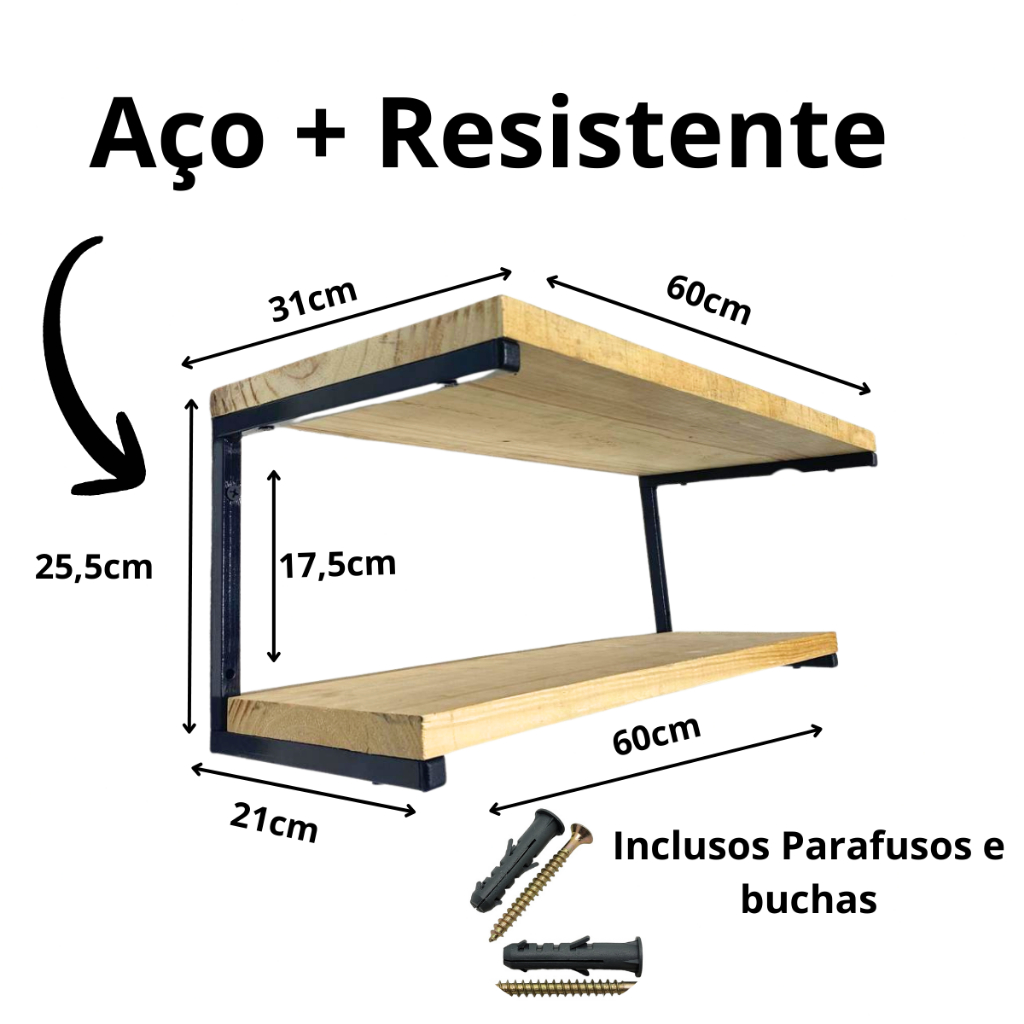 Olá Sejam Muito Bem Vindos a Fabrica Bazico Suporte para Microondas e Multiuso Seu aparelho doméstico no lugar e altura ideal pra você ! Esse suporte para micro-ondas e multiuso tendo um par de Suporte feito em aço Metalon e sua Pintura Eletrostática, Madeira Pinus Premium. A carga máxima é de 30 quilos Pode ser utilizado como Suportes para Microondas, Forno Elétrico, Air Frier, dando uma ajuda como Porta temperos e Porta Condimentos, sendo um organizador top pra sua cozinha sendo suporte para Purificador de água, e até mesmo pro escritório ou sala que tenha Impressora, Servindo para galera deixar como suporte de Videogame, Aparelho de Som, dentre outras inúmeras possibilidades. Principais características: - Fácil instalação - Suporte de Parede feitos em Aço Metalon Resistentes - Prateleiras feitas em Madeira Pinus Tratada e Lixada - Carga máxima: 30kg Medidas: Altura: 25,5cm Altura Interna : 17,5cm Largura: 40cm até 120cm Profundidade: 31cm Conteúdo da Embalagem: - 1 Prateleira completa nicho multiuso - 1 Kit de Parafusos Garantia de 3 meses