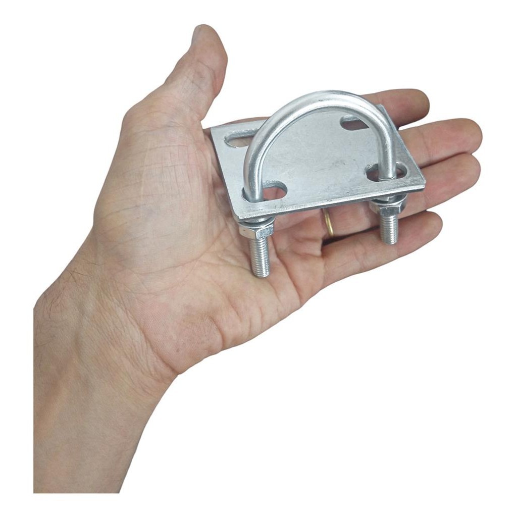 SUPORTE PARA PRENDER O MOTOR DE BICICLETA MOTORIZADA CONTEUDO DA EMBALAGEM - 1x Parafuso em U - 4x Arruelas lisas - 4x Arruelas de pressao - 1x Chapa de furos oblongo - 2x Porcas - 2x Parafusos (conforme a imagem) INFORMACOES TECNICAS - A chapa possui tamanho de 50mm X 72mm. - Os furos possuem 17mm X 9mm. - A distancia entre os furos e de 31mm. - O tamanho do parafuso U e de 75mm de comprimento por 53mm entre roscas. - Suporte utilizado para prender o motor em quadro mais grosso que o tradicional de bike motorizada - Ressaltamos que todos os custos envolvendo instalacao e desmontagem do produto adquirido ficam por conta do consumidor. *** ATENCAO *** - A garantia e para defeitos de fabricacao, assim nao cobre danos causados pelo mal uso ou ma instalacao. - Evite pedidos incorretos, assim tire todas duvidas necessarias no campo de perguntas.