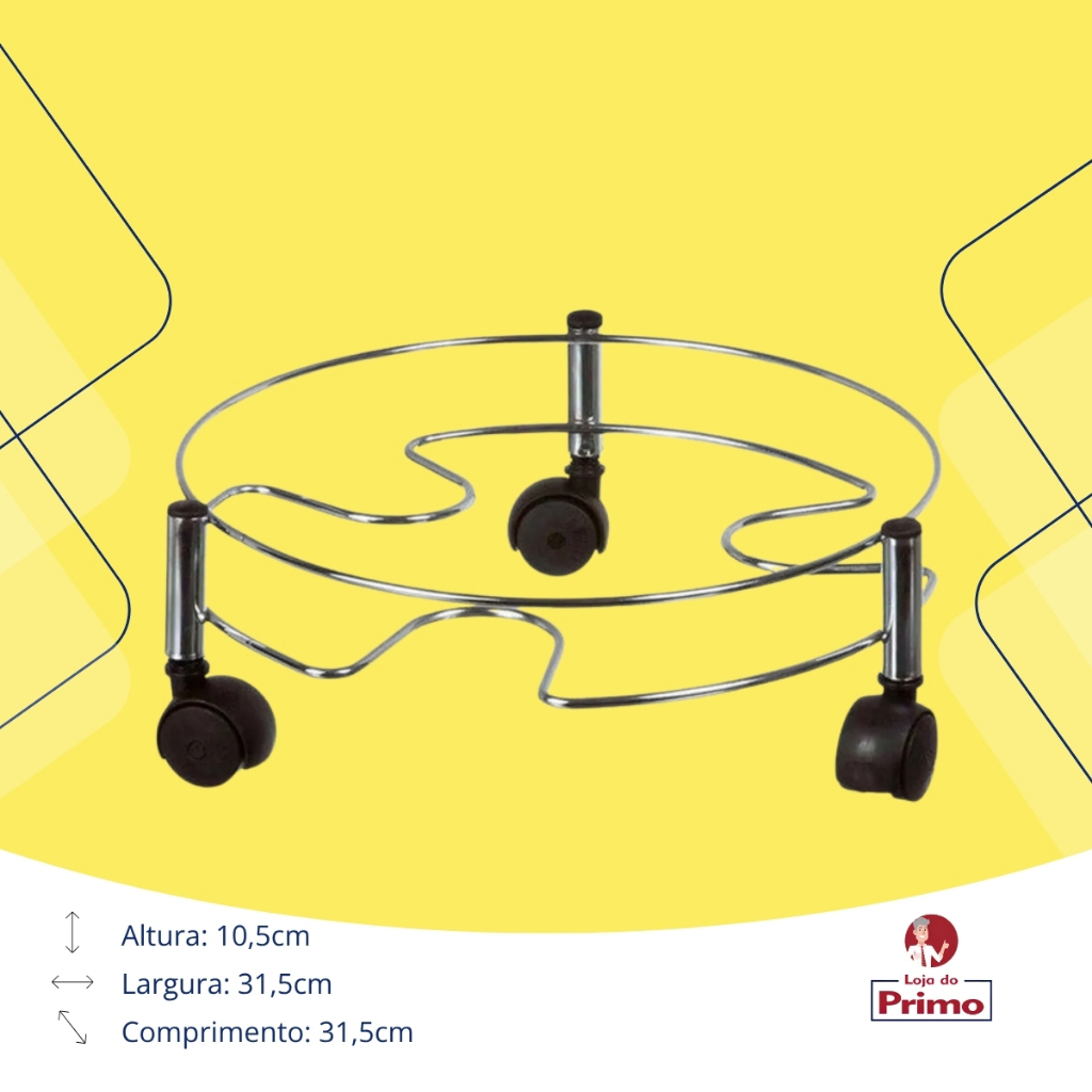 Suporte Multiuso Com Rodinha Rodízio Para Botijão Gás Galão Água Vaso Aço Cromado Arthi