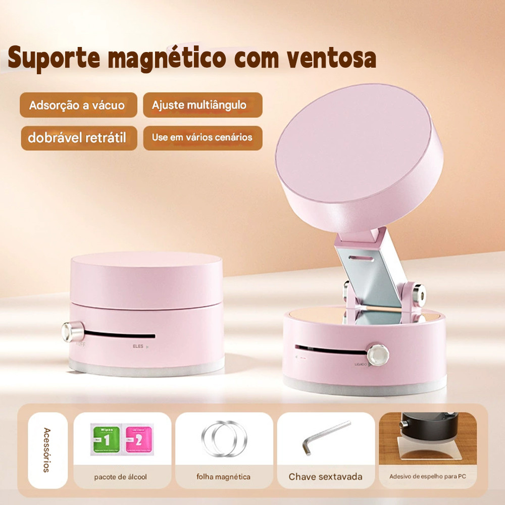 Suporte Veicular Magnético Dobrável com Vácuo Disponível: Preto/Rosa/Branco | Material: Plástico Tecnologia de Vácuo Eficiente Base de PE mantém aderência poderosa em superfícies contaminadas, sem resíduos. Flexibilidade de Posicionamento Mecanismo dobrável/retrátil oferece ajustes verticais e horizontais personalizados. Fixação Magnética Reforçada Anel metálico incluso ativa magnetismo em dispositivos comuns. Dupla tecnologia assegura segurança em movimentos bruscos. Conveniência Portátil Construção leve e compacta ideal para transporte em diversas atividades cotidianas. Adaptação Universal Funciona em superfícies lisas como: parabrisas, telas de carro, azulejos, espelhos e metais. Compatibilidade bilateral.