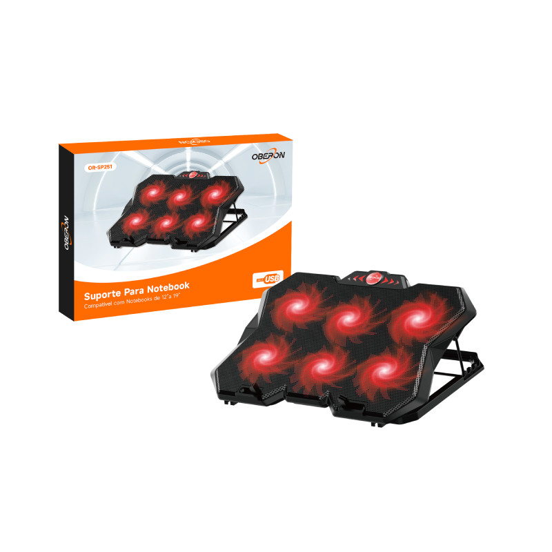 Suporte Notebook Cooler USB 12" a 19" 6 Ventoinhas Ângulo Ajustável Oberon OR-SP251