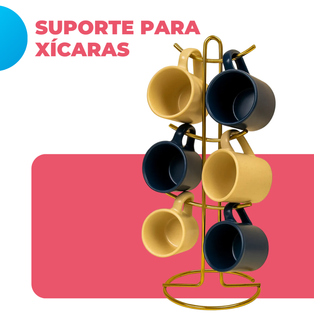 Suporte Organizador 6 Canecas Porta Xícaras Elegante Cozinha Escritório Consultório Dourado Future