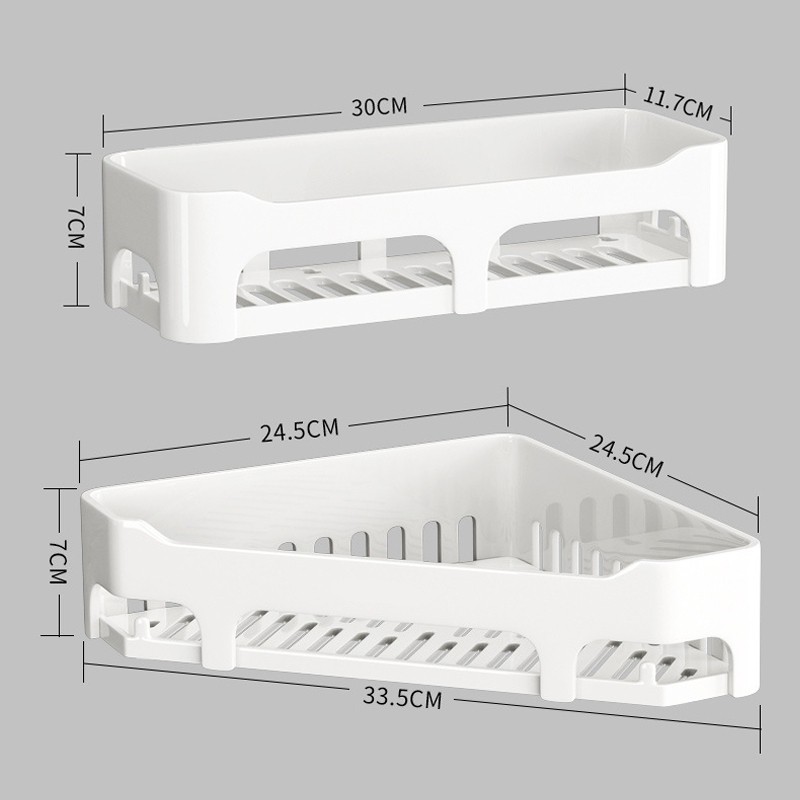 Este maravilhoso suporte pode ser usado de diversas formas, para organizar produtos e pode ser utilizado na cozinha, sala, quarto, escritórios. Essa prateleira além de trazer soluções diversas, deixará seu ambiente mais charmoso e agradável. Não precisa fazer furos na parede pois possui auto colante de alta resistência, é a peça chame para um ambiente organizado. Design de fundo oco, conveniente para drenagem de água mantendo sempre limpo. MATERIAL DE SUPORTE Injetado em ABS, plástico de engenharia de alta resistência BENEFÍCIOS - Pode ser molhado; - Não precisa de furo na parede para instalação; - Resistente ao desgaste e tempo; - Adesivo é à prova d'água e tem forte adesão; - Montagem simples de fácil instalação; - Fundo oco para drenagem de água; - Mais possibilidades para arrumar o banheiro ou cozinha, fazendo com que sua casa esteja sempre arrumada. ** OS ADESIVOS FUNCIONAM EM AZULEJOS E VIDROS ** MEDIDA Retangular - 30(C) x 11,7(L) x 7(A) CM EMBALAGEM CONTÉM - 1 Prateleira - 1 Adesivo Triangulo - 33,5(C) x 24,5(L) x 7(A) CM EMBALAGEM CONTÉM - 1 Prateleira - 2 Adesivos