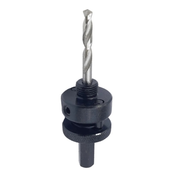 Suporte de fixação para Serra Copo com diâmetro entre 30 à 152 mm é indicado para uso em máquinas com mandril de 1/2”, a Broca Piloto em aço rápido com Haste hexagonal utilizada juntamente com serras copo em trabalhos de perfuração em aço.