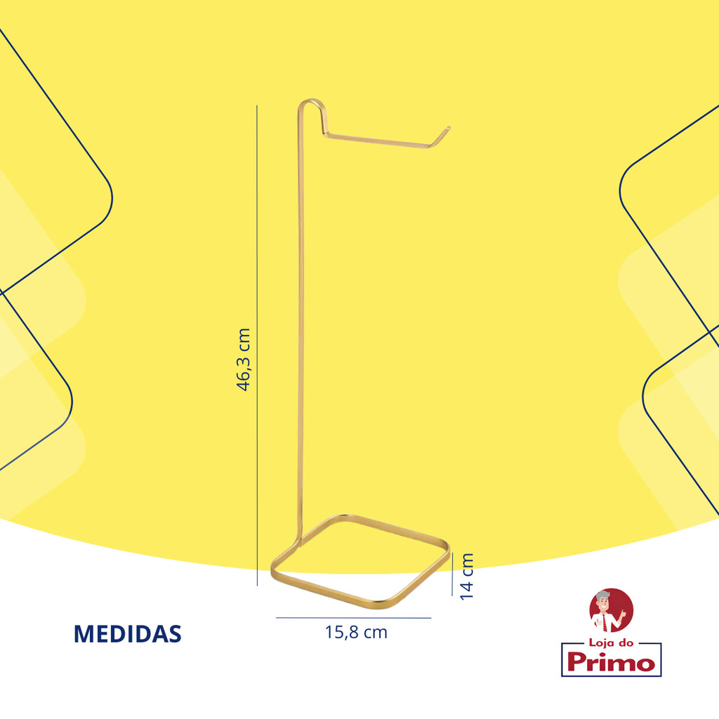 Suporte Papel Higiênico De Chão Para Banheiro Lavabo Dourado Fosco Luxo Arthi