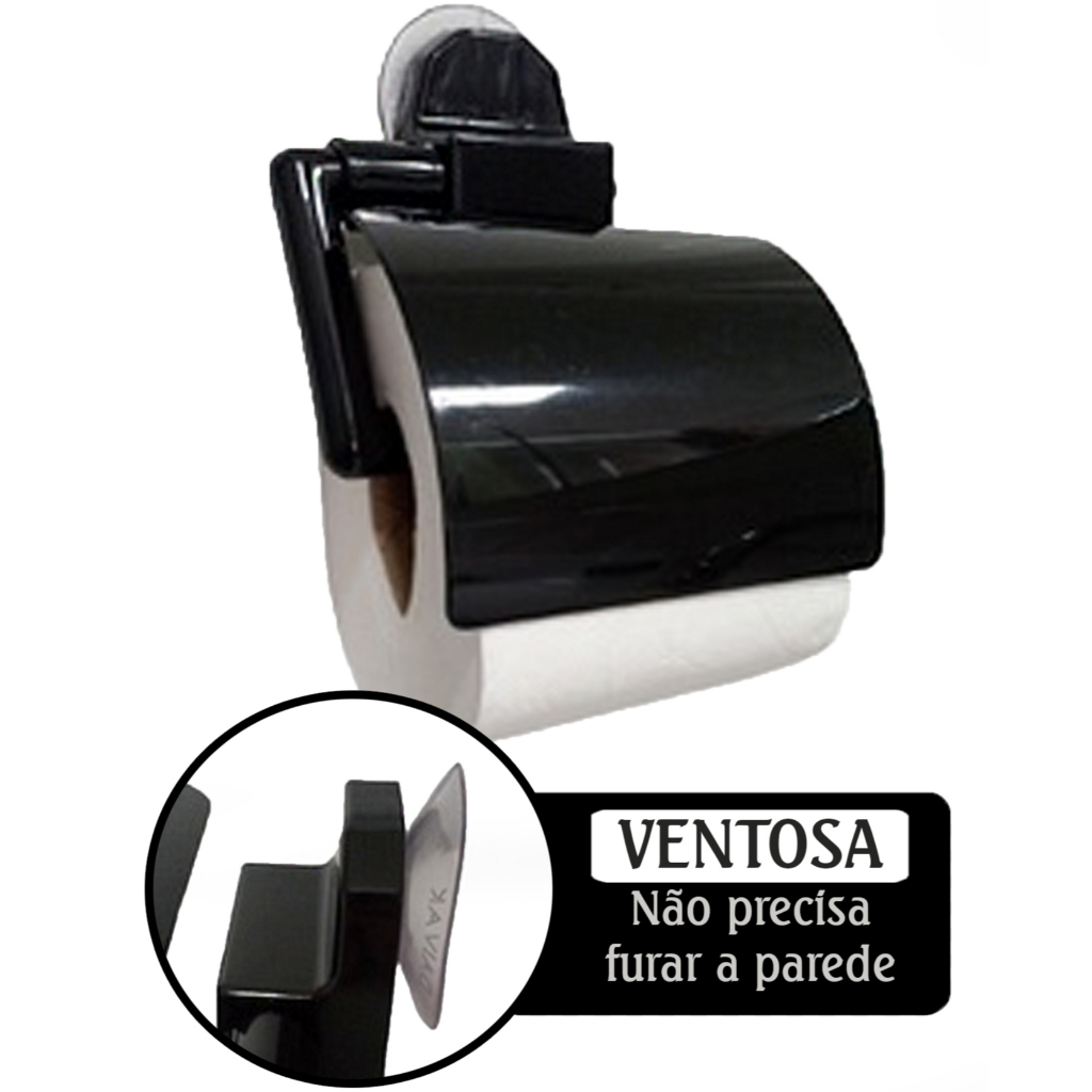 O porta papel higiênico é muito prático e não necessita de furação, pois possui ventosa para a sua instalação. É moderna e deixará seu lavabo muito elegante. Possui tampa para proteção do papel higiênico. Caso deseje parafusar também é possível. Cor :Preto Composição:PVC
