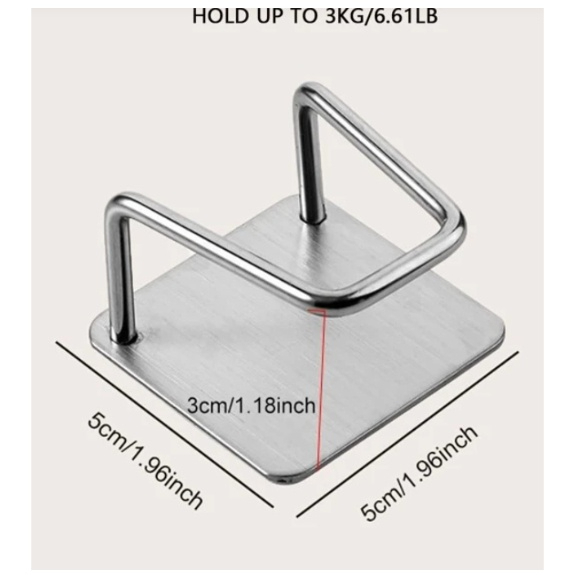 Agora sua esponja não precisa mais ficar toda encharcada e perdida pela cozinha! Com o nosso suporte você coloca sua esponja para escorrer toda a água, não acumulando bactérias e além de fazer bem é super discreto, dando um estilo a mais para sua cozinha. É um suporte para a pia e também outros utensílios domésticos, pode ser utilizado como gancho multiuso para pendurar objetos diversos. COMO INSTALAR: - Limpe e seque bem a superfície em que o produto será instalado. - É colado através de fita dupla face, sem necessidade de furar a parede ou a pia. - Remova o papel protetor. Não toque no adesivo. - Após colar, mantenha pressionado durante 30 segundos. Aguarde 24 horas antes de pendurar algum objeto CARACTERÍSTICAS DO PRODUTO: - Excelente material, feito com liga de ferro, resistente a alta corrosão e não enferruja. DIMENSÕES: Altura: 5 cm Comprimento: 5 cm Largura: 3,5 cm COR: APENAS PRATA!