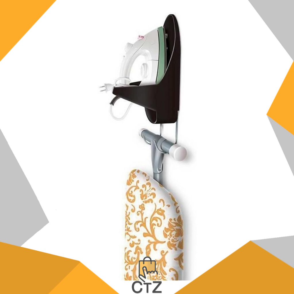 Suporte para Ferro e de Tábua De Passar Roupas de Parede Preto Secalux