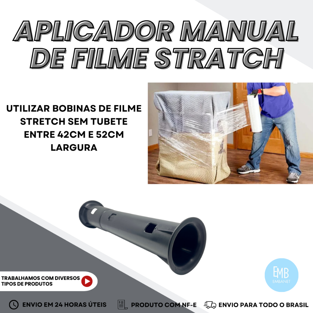 Aplicador para Filme Stretch EMBANET® - Sua Solução sem Stress! Adeus perda de tempo, nós entendemos as lutas com os emaranhados e a dificuldade em esticar o filme sem desastres. Mas relaxa, porque temos a solução perfeita para você - nosso incrível Aplicador para Filme Stretch! Evite Rasgos e Desperdício: Adeus rolos amassados! Nosso aplicador garante que o filme seja esticado como uma estrela, reduzindo os riscos de rasgos e minimizando o desperdício. Filme stretch sem drama! Economize Dinheiro: Desperte o mestre da economia em você! Com nosso aplicador, você economiza dinheiro, pois precisa de menos material para uma proteção imbatível. Afinal, quem não gosta de economizar uns trocados? Versatilidade e Conforto: Nosso Aplicador é como um camaleão! Adaptável a diferentes tamanhos de rolos (42cm a 52cm), ele é versátil como poucos. Ah, e é ergonomicamente projetado para proporcionar conforto até mesmo durante as sessões de embalagem mais longas. Embalagem com estilo e conforto! Ideal para Empresas e Residências: Seja para embalar produtos na sua empresa ou organizar a mudança da sua casa, nosso Aplicador para Filme Stretch é o parceiro perfeito que atende a todas as suas necessidades de embalagem. Vai da mudança ao empacotamento profissional - fácil e eficaz! Contém: 1 Aplicador para filme stretch sem tubete Ajustável para bobinas entre 42cm e 52cm de largura Na EMBANET® você encontra materiais de alta performance, durabilidade e ótimo acabamento, tudo não tóxico e ecologicamente correto. Oferecemos um ótimo custo-benefício, porque a qualidade não precisa custar os olhos da cara! Envio Rápido e Seguro: Nosso compromisso é entregar seu produto em perfeitas condições, sem problemas ou danos durante o transporte. Garantimos qualidade e satisfação aos nossos clientes, sempre! ️ Veja mais anúncios do vendedor. Descubra o que mais temos para oferecer e transforme sua experiência de embalagem com EMBANET®!