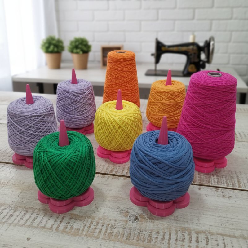 🌸 Suporte para Fios em Formato de Flor – Para Novelos e Cones de Barbante com Base Antiderrapante