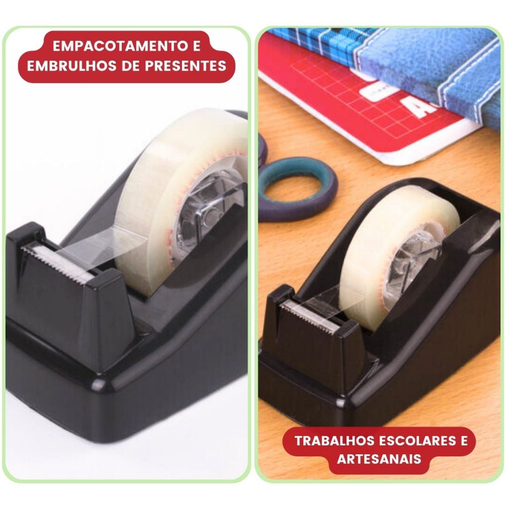 Suporte para Fita Adesiva Pequeno Base Antiderrapante, 10 rolinhos de fita: 12mm x 30 metros Escritório