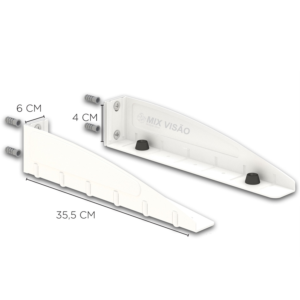 SUPORTE MULTIUSO DE AÇO O suporte multiúso que dá um show de versatilidade em qualquer situação. Vai com tudo! Seu aparelho doméstico no lugar e altura ideais! Feito em aço carbono que garante total segurança. A carga máxima é de 45quilos e permite ajuste de largura e comprimento. Sistema de fixação lateral Fácil instalação Tamanho do produto: 35,5 / 6 / 4 cm (Prof./Lar./Esp.) Peso Suportado: 45 kg Tempo de montagem: 20 min. Conteúdo da Embalagem 1 Suporte Kit de Parafusos 1 Manual de instruções Observações Verifique se a superfície de instalação apresenta resistência suficiente para uma instalação segura. Fique atento a carga máxima indicada para o suporte. Aconselhamos que a instalação seja realizada por um profissional da área.