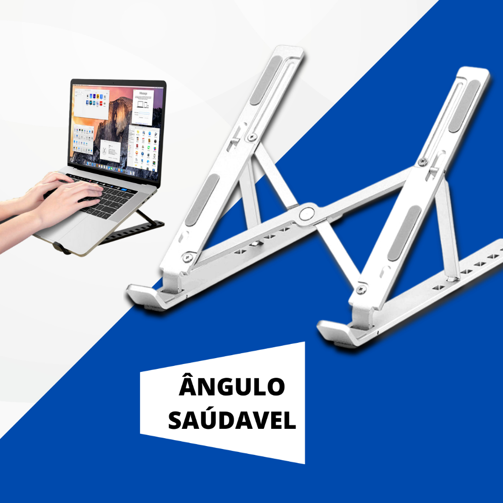 Suporte Base P/ Notebook Regulável TEMOS OPÇÃO COM 1 E 2 UNIDAEES MATERIAL DO SUPORTE: PLÁSTICO COM A BASE DE METAL SUPER RESISTENTE. INDICADO PARA NOTEBOOK ATÉ 17 POLEGADAS COR DO SUPORTE: PRETO/BRANCO (CONFORME DISPONIVEL ESTOQUE) O Suporte para Notebook faz a correção da linha do usuário à tela do notebook, proporcionando maior comodidade e conforto na hora do trabalho, evitando fadigas nas regiões lombar, nuca e pescoço. O Suporte mantém o notebook em um nível elevado da mesa, permitindo a livre circulação do ar abaixo do aparelho garantindo uma boa refrigeração e ajudando a evitar o superaquecimento do aparelho. DISSIPAÇÃO DE CALOR RÁPIDOO design oco e o ângulo de inclinação para a frente do suporte do laptop oferece grande dissipação de calor e fluxo de ar natural para evitar que seu laptop superaqueça. CARACTERÍSTICAS: • Totalmente portátil – Suporte extremamente leve e compacto (retrátil); • Pronto para usar – não é necessário uso de parafusos ou qualquer ferramenta; • Regulagem de largura – o ajuste de largura é milimétrico, adaptando-se às dimensões do notebook; • Regulagem de altura – apresenta regulagem de altura em vários níveis, permitindo ajuste conforme a estatura da pessoa;