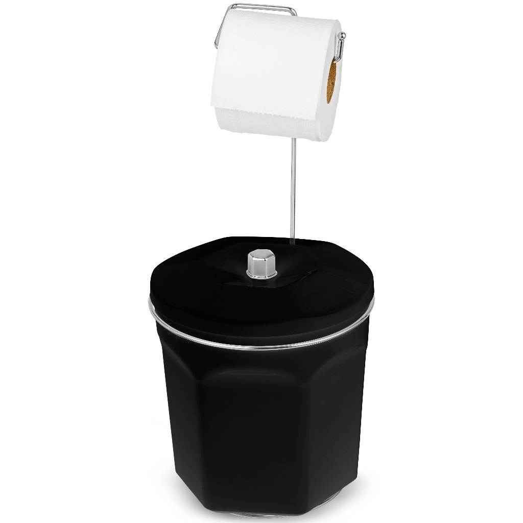 Suporte Para Papel Higiênico Com Lixeira Branca 6 litros Passerini Branco e Preto