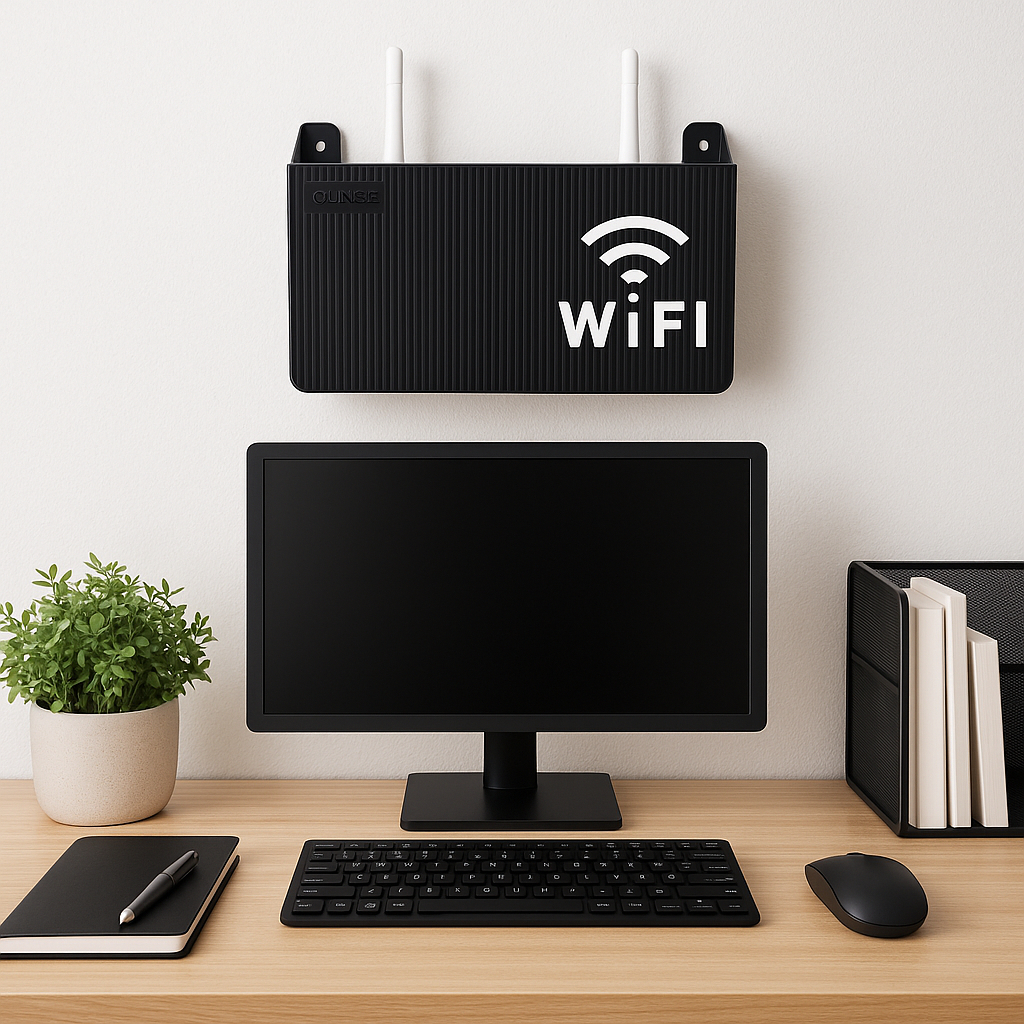 Suporte Para Roteador Modem WiFi. Este organizador prático é ideal para fixar seu roteador, modem ou repetidor de internet na parede, garantindo que seus dispositivos fiquem sempre ao alcance e em um local seguro. Com um design discreto e funcional, o suporte se adapta a diferentes ambientes, seja na sala, no escritório ou no quarto. Sua instalação é simples e rápida, permitindo que você aproveite a liberdade de um espaço livre de desordem em poucos minutos. Feito com materiais de alta qualidade, o suporte é resistente e durável, proporcionando a segurança necessária para seus equipamentos. Além disso, sua estrutura adesiva garante que o suporte permaneça firme na parede, evitando quedas e danos aos dispositivos. Transforme a maneira como você organiza sua tecnologia em casa. O Suporte Para Roteador Modem Wi-Fi Adesivo é a solução perfeita para quem busca praticidade e estilo em um só produto.
