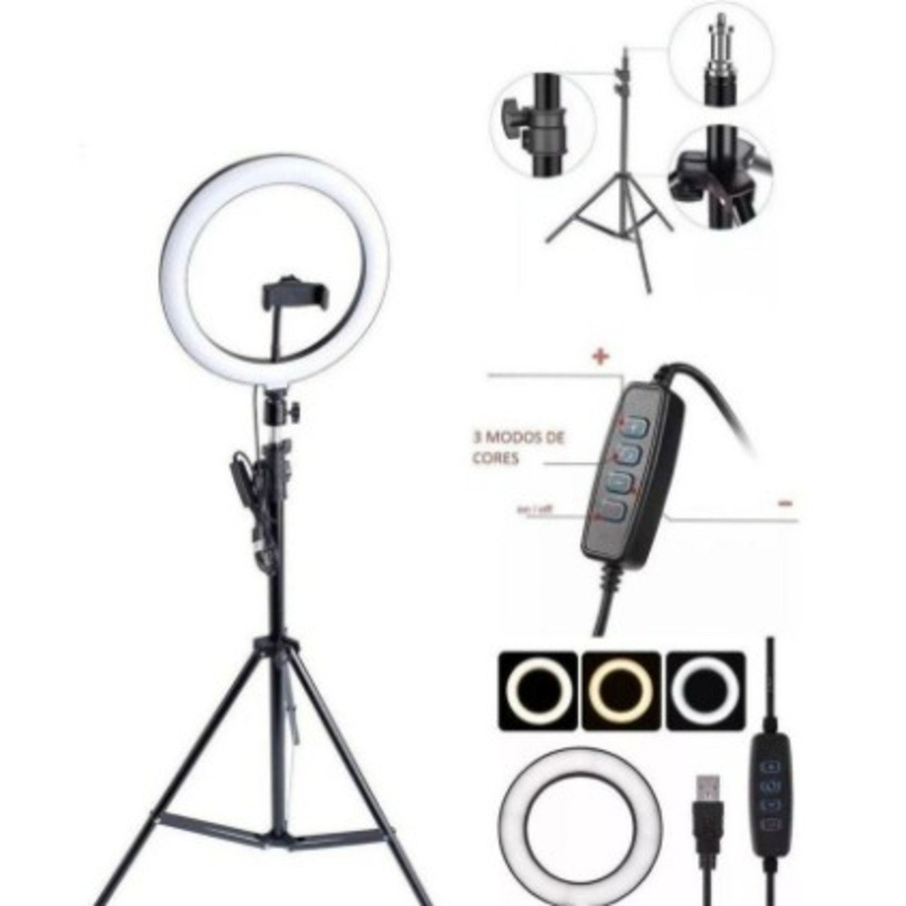 Especificações: 3 cores ajustáveis Temperatura da cor: 3300-5600 K Tamanho da luz: 30 cm/37 cm Altura do tripé: 210 cm Comprimento do cabo de alimentação USB: 200 cm Característica: Luz branca/quente/suave Modelo: Luz de preenchimento de estúdio Usos: 1. Com o estúdio para preencher a foto com luz, luz de preenchimento com temporizador para retratos, 2. Pequena luz LED de estúdio com USB para preenchimento de fotos; Maquiagem 3. Com tripé, torne sua fotografia mais conveniente. 4. Luz de preenchimento com temporizador, câmera de beleza, âncora de vídeo, fotografia com luz suave ao vivo, luz com dimerização contínua 5. É amplamente aplicada em luz fotográfica externa, luz de preenchimento interna, retratos, moda, arte de casamento, fotografia publicitária, gravação de vídeo, transmissão ao vivo, etc. 6. Sem radiação ultravioleta e infravermelha, baixa emissão de calor, segurança e proteção ambiental. Longa vida útil de mais de 50.000 horas. 7. É amplamente aplicado em iluminação fotográfica ao ar livre, luz de preenchimento em ambientes internos, retratos, moda, arte de casamento. A luz em forma de anel tornará os olhos do modelo mais brilhantes e vívidos, o que torna o retrato mais perfeito! Conteúdo da embalagem: 1 x Anel de luz de 30 cm 1 x Tripé de 210 cm 1 x Clipe para telefone