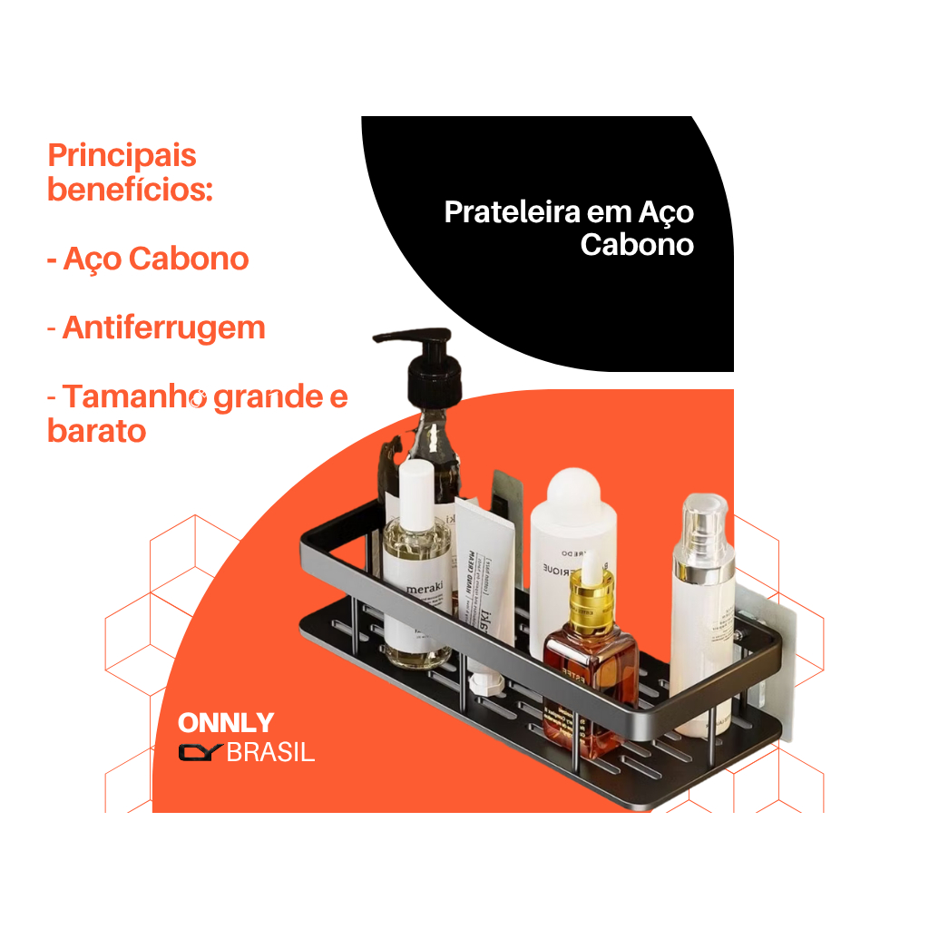 Suporte para Shampoo em Metal – Praticidade e Durabilidade para Seu Banheiro Apresentamos o suporte para shampoo todo em metal com pintura em carbono, que evita oxidação e garante longa vida útil. Seu design vazado impede o acúmulo de água, mantendo seu ambiente sempre seco e organizado. Ideal para quem busca resistência, funcionalidade e estilo em um só produto.