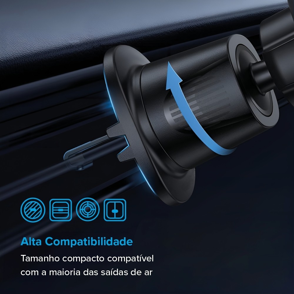 Descubra o Air Vent Holder, um suporte veicular que combina funcionalidade e segurança para o seu dia a dia. Com rotação de 360 graus, ele permite que você ajuste seu smartphone tanto na posição horizontal quanto na vertical, oferecendo flexibilidade para diversas situações, como seguir rotas no GPS ou assistir a vídeos durante uma pausa. O clipe de gancho oferece uma fixação segura e estável na saída de ar do seu veículo, garantindo que o suporte permaneça firme, mesmo em terrenos irregulares. Compatível com smartphones de 4 até 6,7 polegadas, ele se adapta a diversos modelos de aparelhos, proporcionando um encaixe perfeito sem obstruir a visão. Seu design compacto e discreto mantém o interior do seu carro organizado e elegante, sem comprometer a visibilidade. Design Funcional: Rotação de 360 graus, permitindo uso na horizontal e vertical, ideal para visualizar mapas, assistir vídeos ou realizar videochamadas. Segurança e Estabilidade: O clipe de gancho oferece uma fixação firme e segura na saída de ar do carro, garantindo que o suporte permaneça estável em qualquer tipo de estrada. Compatibilidade Ampla: Compatível com smartphones de 4 até 6,7 polegadas, o suporte se adapta a diferentes modelos, oferecendo um encaixe perfeito e seguro. Design Compacto e Discreto: Com um formato que não obstrui a visão, o suporte mantém o interior do carro organizado, sem interferir na visibilidade durante a condução. Especificações Técnicas: Material: Plástico Plástico ABS + Metal Compatibilidade: 4 - 6,7 polegadas Tamanho do clipe: 6 - 9 cm *Garantia i2GO: Esse produto está garantido contra defeitos de fabricação por 1 ano. Para ativar 2 anos mais (3 anos no total), registre seu produto em nosso site.