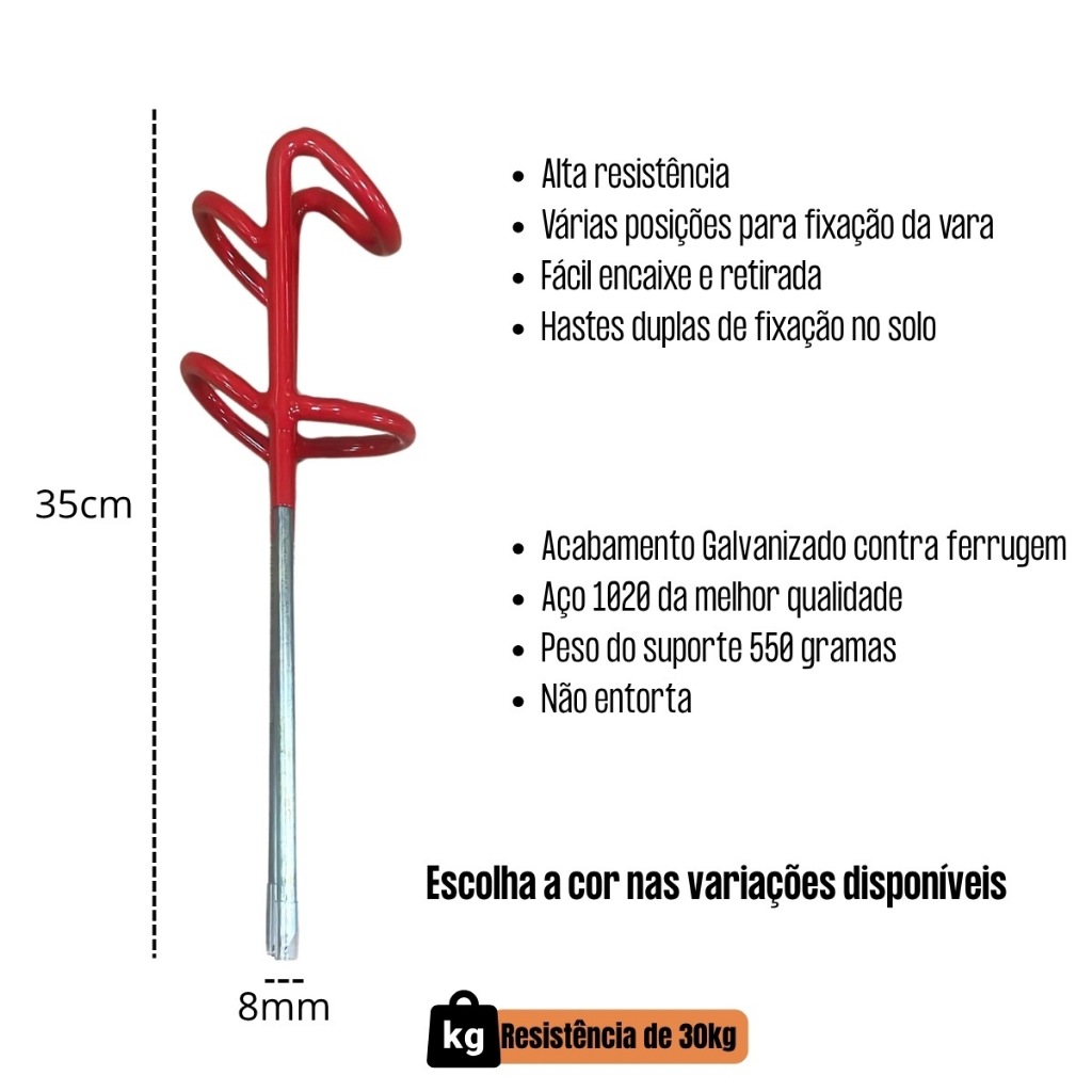 Suporte de vara ideal para quem exige resistência. Fabricado com estrutura em aço 1020 e hastes galvanizadas, oferece durabilidade, fixação firme e proteção total para seu equipamento. A parte superior é revestida com borracha antiderrapante, evitando escorregões e arranhões. Seu grande diferencial está nos múltiplos ângulos de apoio: funciona tanto na vertical quanto inclinado para os dois lados, oferecendo versatilidade em qualquer tipo de pesca. Indicado para uso em pesqueiros, lagos, rios e barrancos. - Escolha a cor nas opções disponíveis. Modelo: Suporte Galvanizado com Revestimento em Borracha Material: Aço 1020 com solda TIG Acabamento: Galvanizado + borracha antiderrapante Fixação: Haste dupla com cravação firme Ângulos de uso: Vertical ou inclinado (ambos os lados) Resistência: Até 30kg de tração Comprimento: 35 cm Peso aproximado: 550g