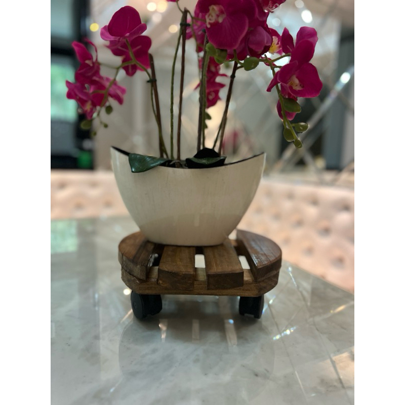 Suporte para vaso de plantas, confeccionado em madeira de Pinus Medida 20cm Rodinhas são enviadas conforme estoque disponivel, podenso ser a 30mm ou 40mm enviamos montado e com acabamentos lixado e envernizado conforme as fotos, para outros tamanhos favor solicitar MADEIRA : Pinus MEDIDAS 20 X 20X 9,5 COR : VERNIZ ESCURO RODINHAS: 30 ou 40 mm Suporta 25Kg cada Fabricamos diversos tamanhos ! Obs: o modelo mostrado nas fotos e correspondente ao tamanho 20cm, as rodinhas saõ enviadas conforme estoque disponivel ! a ACLUMI preza em sempre oferecer a melhor impressão com seus produtos, todos confeccionados com muito carinho.