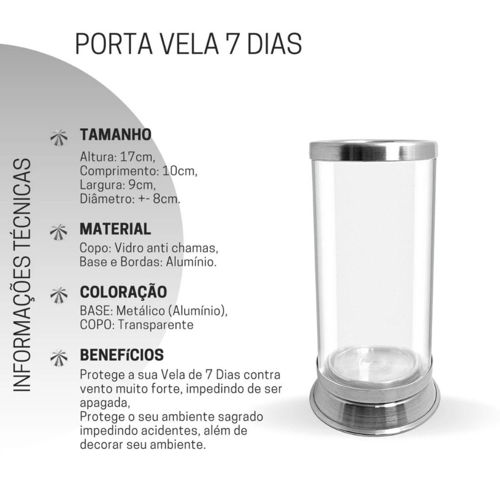 Suporte Para Vela De 7 dias - Protetor de Vela Votiva 7 dias - Castiçal Transparente Vidro c/ Aluminio