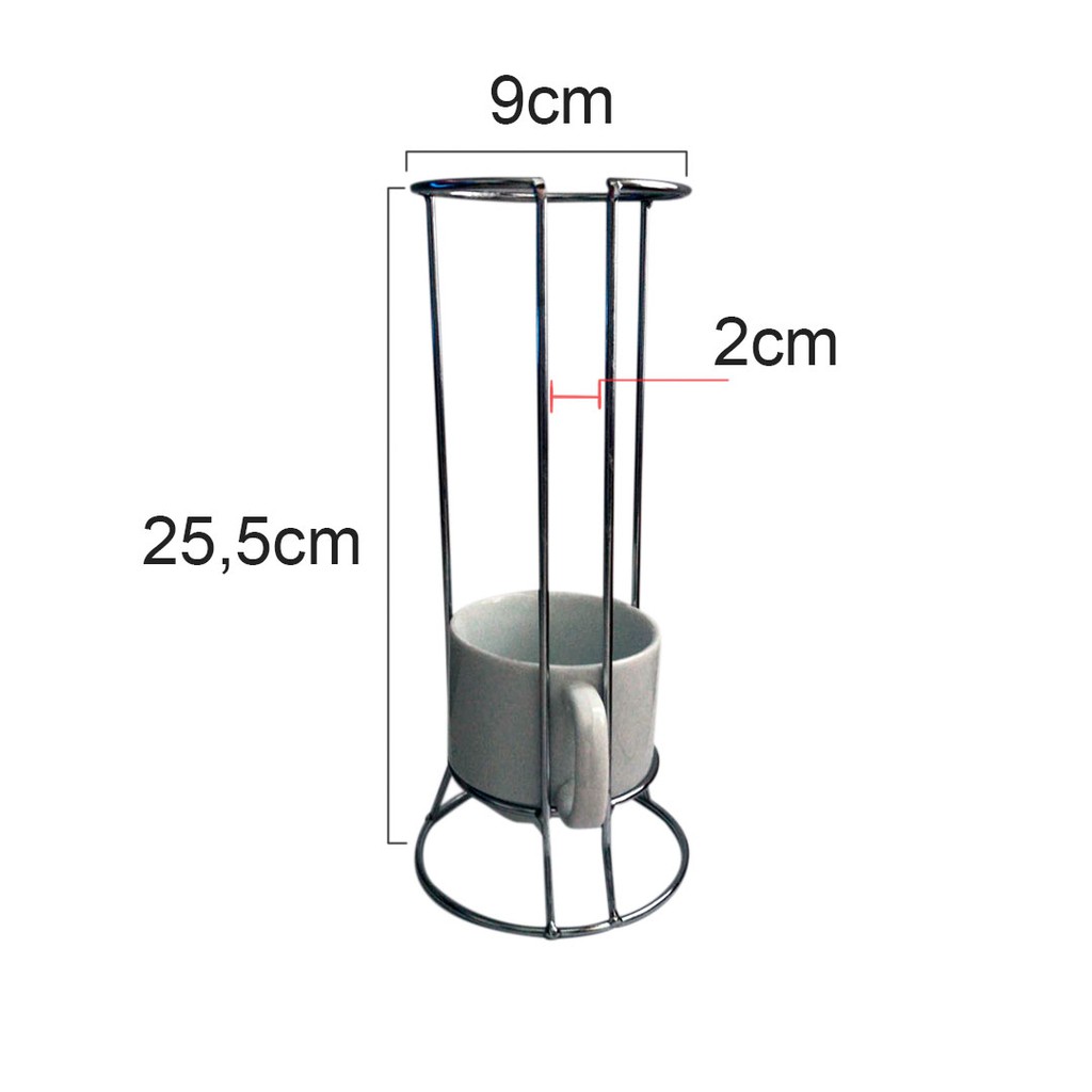 Suporte de Xícara de Empilhar para 4 xícaras Suporte aramado para empilar xícaras. Tamanho: Altura: 25,5 cm Diâmetro: 9cm Abertura para alça: 2cm Suporta até 4 xícaras 29/02/2024 16:36:21 08 de outubro de 2025