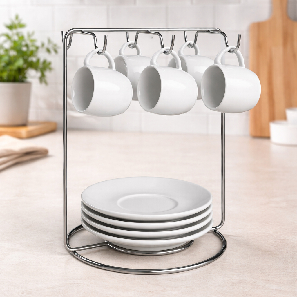 Suporte Para Xícaras Caneca Pires Aramado Cromado Decoração Casa Cozinha