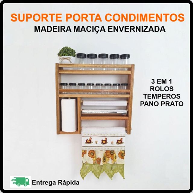 | Suporte Parede Porta Temperos Condimentos Papel Toalha Pano Prato C... este produto | R$ 59,93 | 25% | 5.0/5 | 4 |