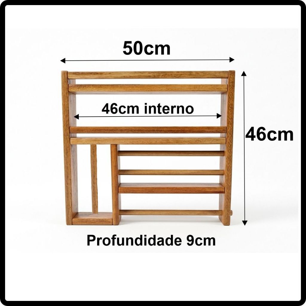 🍯 ORGANIZADOR DE COZINHA PREMIUM – MADEIRA MACIÇA COM ACABAMENTO EM VERNIZ, ESTILO FARM HOUSE, BOHO. Transforme sua cozinha com o toque rústico e a organização impecável que só o Suporte Multiuso da Casa Terre oferece. Fabricado artesanalmente em madeira de alta qualidade, este organizador é a solução definitiva para otimizar espaço e decorar seu ambiente com elegância. ⚠️ (NOTA: POTES, ROLOS E ITENS DECORATIVOS DAS FOTOS NÃO ACOMPANHAM O PRODUTO). 🚀 POR QUE ESCOLHER O SUPORTE CASA TERRE? MULTIFUNCIONAL 3 EM 1: Acomoda seus temperos favoritos, possui suporte para rolo de Papéis Toalha, Alumínio e Filme e um braço exclusivo para seu Pano de Prato. Tudo em um só lugar! MADEIRA TRATADA E ENVERNIZADA: Diferente de suportes comuns, o nosso recebe acabamento em verniz, garantindo proteção contra umidade, gordura e facilitando a limpeza. 📦 CONTEÚDO DA EMBALAGEM: 01 Suporte Porta Temperos e Condimentos Multiuso. ⚠️ (NOTA: POTES, ROLOS E ITENS DECORATIVOS DAS FOTOS NÃO ACOMPANHAM O PRODUTO). DESIGN EXCLUSIVO: Combina perfeitamente com cozinhas modernas, áreas gourmet ou decorações rústicas. INSTALAÇÃO SIMPLES: Enviamos com furação pronta, garantindo uma fixação segura e firme na sua parede. 🛠️ ESPECIFICAÇÕES TÉCNICAS: Material: Madeira Maciça (Eucalipto Reflorestado Selecionado). Acabamento: Verniz de alta resistência. Capacidade: Suporta vários potinhos de tempero por ter duas prateleiras. 📏 DIMENSÕES DO PRODUTO: Altura: 46 cm Largura: 50 cm Profundidade: 9 cm 💡 DICA DE OURO CASA TERRE: Combine este suporte com nossos Kits de Fixação Premium (vendidos separadamente em nossa loja) para uma instalação perfeita e duradoura em sua parede de alvenaria! 🚚 ENVIO IMEDIATO E NOTA FISCAL EM TODOS OS PEDIDOS. TRANSFORME SUA ROTINA NA COZINHA COM A QUALIDADE E O CARINHO DA CASA TERRE!