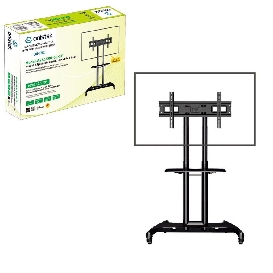 Proporcione praticidade e flexibilidade para o seu ambiente com o Suporte Pedestal Móvel para TVs. Desenvolvido para oferecer um suporte robusto e seguro, é compatível com televisores de 55" a 90" e com peso máximo de até 90 kg. Ideal para uso em videoconferências, reuniões, eventos ou ambientes corporativos, este suporte se destaca pela sua estrutura resistente, regulagem de altura ajustável e mobilidade, facilitando o transporte e posicionamento da TV de forma prática e rápida. Características: - Compatibilidade Universal: Compatível com TVs planas e curvas de 55" a 90", suportando modelos LED, QLED, LCD e Plasma. - Ajuste de Altura Regulável: Altura ajustável de 1120 mm a 1520 mm (medida do chão até o centro da tela), permitindo personalização conforme a necessidade do ambiente. - Suporte para Acessórios: Bandeja com capacidade de até 4,5 kg e regulagem de altura para acomodar notebooks, blu-ray players, teclados e outros equipamentos, com trava automática tipo "click". - Mobilidade Total: Rodízios com travas que garantem mobilidade e estabilidade, ideal para transporte fácil e seguro do suporte entre diferentes ambientes. - Estrutura Resistente e Durável: Fabricado em aço carbono com tratamento anticorrosão e pintura epóxi eletrostática, garantindo alta resistência, durabilidade e excelente acabamento. Especificações Técnicas: - Material: Aço carbono com pintura epóxi eletrostática. - Ajuste de Altura: 1120 mm a 1520 mm (do chão até o centro da TV). - Peso Suportado: Até 90 kg (TV) e até 4,5 kg (bandeja). - Padrão VESA de Fixação: Compatível com VESA 200x200mm até 800x500mm. - Cor: Preto. - Compatibilidade de Tamanho de Tela: 55" a 90". - Tipo de TV: LED, QLED, LCD, Plasma. - Rodízios: Inclui rodízios com travas para evitar movimentos indesejados. Vantagens: - Fácil Montagem: Acompanha manual de instruções e acessórios necessários para instalação rápida e segura. - Estrutura Leve e Resistente: Combina durabilidade e leveza, facilitando o transporte sem comprometer a robustez do suporte. - Passagem Interna para Cabos: Permite uma organização eficiente e visual limpo para o ambiente. - Segurança e Estabilidade: Rodízios com travas que evitam deslizamento indesejado e garantem total segurança durante o uso. Aplicações: - Ambientes Corporativos e Residenciais: Perfeito para reuniões, videoconferências, apresentações e eventos em escritórios, salas de conferência e auditórios. - Uso Residencial: Excelente opção para home theaters ou ambientes que demandam flexibilidade na posição da TV. - Eventos e Exposições: A mobilidade facilitada torna este suporte ideal para eventos onde a configuração do espaço pode mudar frequentemente. Itens Inclusos: 1x Suporte pedestal móvel. 1x Acessórios para instalação da TV no suporte. 1x Acessórios para montagem do suporte. 1x Manual de instruções.