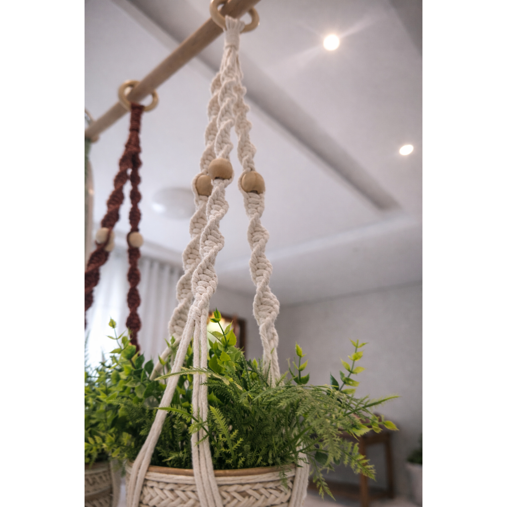 Suporte para Plantas Artesanal em Macramê Com Bolinha De Madeira 90 cm (não acompanha a planta) Transforme seu ambiente com um toque natural, acolhedor e cheio de estilo! Nosso suporte para plantas em macramê é feito 100% à mão, com corda de algodão resistente e acabamento impecável, ideal para valorizar suas plantas e a decoração do seu espaço. ✔ Design artesanal que combina com decoração boho, natural, rústica ou minimalista ✔ Perfeito para salas, varandas, quartos, escritórios e cantinhos verdes (Planta não inclusa) ✔ Eleva o vaso, economiza espaço e destaca suas plantas ✔ Material firme e durável, suporta vasos com segurança ✔ Argola superior que facilita a instalação 🌱 Versátil e charmoso
