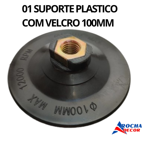 Suporte Plastico Rígido com Velcro 100mm Rosca M14 Para Lixas Polimento Marmoraria