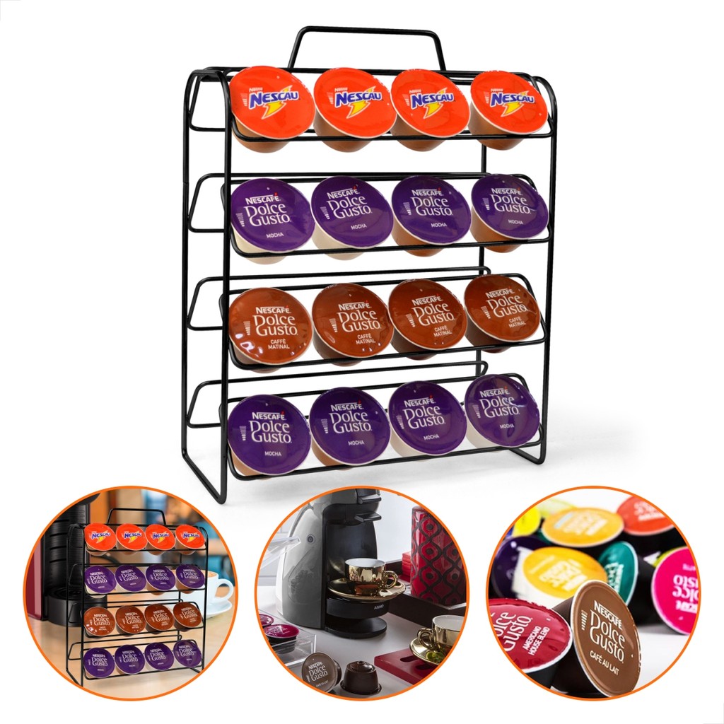 Suporte para cápsulas de Café Dolce Gusto especial ótima qualidade Com esse lindo Suporte para cápsulas de café Dolce Gusto, vai poder armazenar até 32 cápsulas. É um produto levem delicado e durável. Vai trazer graça e leveza à sua cozinha ou copa, além de praticidade no armazenamento e guarda das cápsulas de café. Nessa linda cor preta, com pintura resistente e duradoura é um item que vai trazer requinte, graça e beleza ao seu ambiente. Nas dimensões: 22 cm x 12 cm e uma altura de 30 cm, cabe em qualquer espaço de sua cozinha. Venha ter esse item prático e criativo da PLUG LAR em seu lar. PLUG LAR - A solução inteligente para o seu lar.