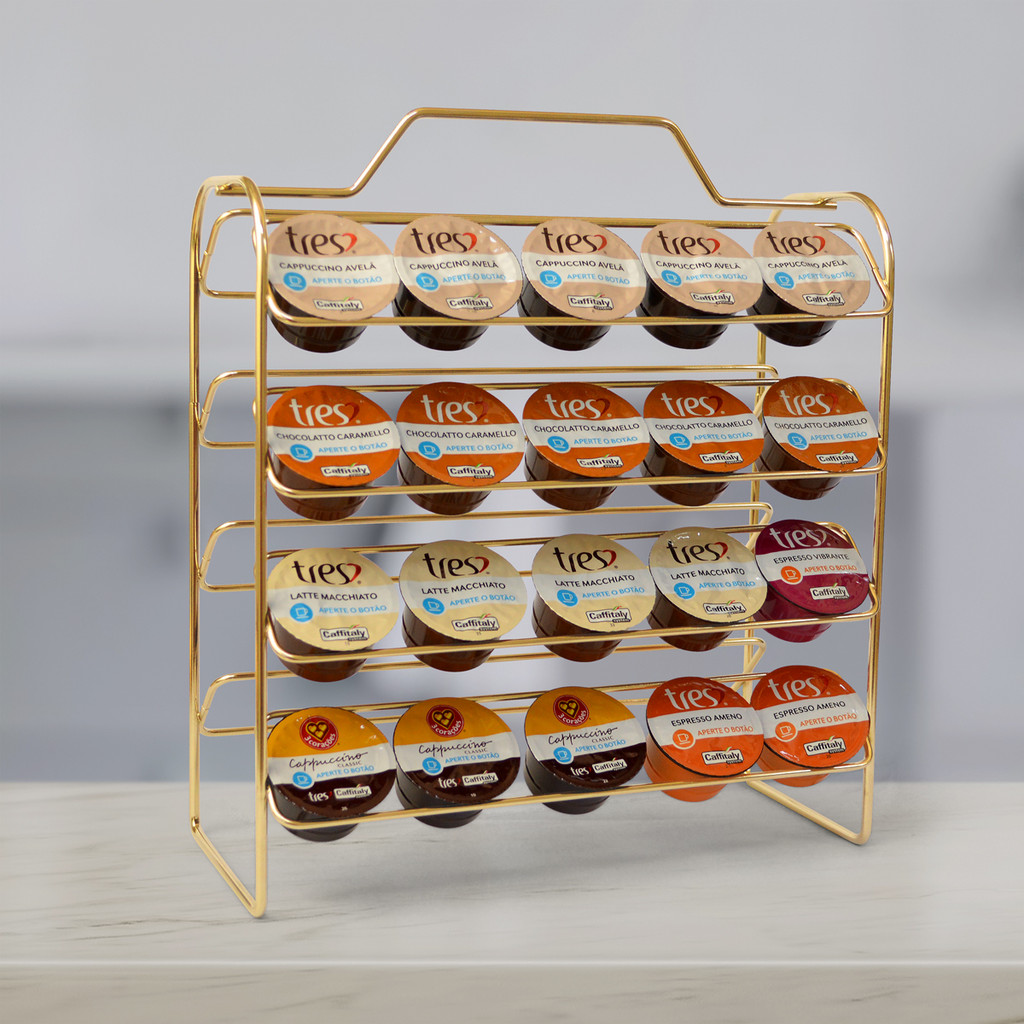 O Suporte Porta Cápsulas 3 Corações 40 Unidades Dourado da Plug Lar é o acessório perfeito para quem deseja manter suas cápsulas de café organizadas de forma prática e elegante. Com um design moderno e sofisticado, este suporte é capaz de armazenar até 40 cápsulas de café 3 Corações, garantindo que você tenha sempre à mão a sua variedade favorita de café. Com capacidade para suportar até 40 cápsulas, oSuporte Porta Cápsulas 3 Corações 40 Unidades Dourado da Plug Lar é compacto e pode ser facilmente acomodado em sua cozinha, sem ocupar muito espaço. Além disso, ele é feito com materiais de alta qualidade, garantindo que seja resistente e durável, e seu acabamento cromado confere um toque moderno e elegante, tornando-o não apenas funcional, mas também uma peça decorativa para sua cozinha. Com o Suporte Porta Cápsulas 3 Corações 40 Unidades Dourado da Plug Lar, você pode manter suas cápsulas de café organizadas de forma prática e elegante, facilitando o acesso a elas sempre que precisar. Não perca mais tempo procurando suas cápsulas de café e invista no Suporte Porta Cápsulas 3 Corações 40 Unidades Dourado da Plug Lar hoje mesmo! Contém: 1 unidade do Suporte Porta Cápsulas 3 Corações