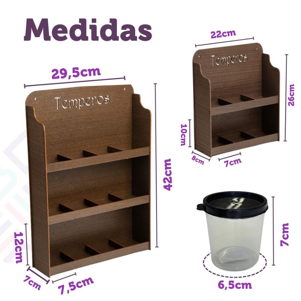 Apresentamos o nosso incrível Suporte Prateleira Porta Temperos Condimentos de Parede Com divisórias. Você já pensou em transformar sua cozinha em um ambiente mais organizado e aconchegante? O nosso Suporte Porta Temperos rústico é perfeito para quem busca praticidade e eficiência na hora de cozinhar. Pode ser usado em cima da sua bancada ou até mesmo fixado na parede da forma que você achar melhor. Com acabamento impecável e com duas opções de capacidade, um para capacidade para 6 potes ou a opção para 12 potes, você terá um item resistente e versátil sempre à mão, fazendo da sua rotina na cozinha, um momento ainda mais prazeroso. Feito em MDF de altíssima qualidade, Madeira 100% de reflorestamento, que contribui para a sustentabilidade do meio ambiente e resistente. Venha transformar seu momento de cozinhar em algo ainda mais especial. Garanta já o seu e mantenha seus temperos organizados e ao alcance das mãos. Materia: Mdf de qualidade. Medidas: *CAPACIDADE PARA 6 POTES* Comprimento: 22cm Largura: 8cm Altura: 26cm -MEDIDAS DAS DIVISÓRIAS PARA 6 POTES: Comprimento: 7cm Largura: 8cm Altura: 10cm *CAPACIDADE PARA 12 POTES* Comprimento: 29,5cm Largura: 7cm Altura: 42cm -MEDIDAS DAS DIVISÓRIAS PARA 12 POTES: Comprimento: 7,5cm Largura: 7cm Altura: 12cm DÚVIDAS FREQUENTES: Acompanha os potes? -Vendemos a opção COM POTES e SEM POTES, SELECIONE A VARIAÇÃO NA HORA DA COMPRA!!! Quais cores tem disponíveis? -Temos nas cores Preta, Marrom e Caramelo. Os potes são de plásticos? -Sim, são de plásticos super resistentes. -Quantos ml tem os potes? -Tem 200ml. *Fabricado em MDF de Altissima Qualidade; *Pintura em Gel; *Resistente, com excelente acabamento; *Prático e Eficiente; *Capacidade para 12 Potes; *Material ultra resistente e durável; *Mais organização para sua cozinha; *Furos para fixação na parede; *Espaço ideal para organizar seus temperos e condimentos; *Acabamento impecável Não acompanha buchas e parafusos. Pode haver diferença de tonalidade, poís são peças artesanais! Envio imediato para todo o Brasil. SOMOS LOJA FISICA! COMBINANDINHO DECORAÇÕES E PRESENTES Oferecemos o melhor atendimento! Estamos a disposição no chat para esclarecer qualquer dúvida e trabalhamos para garantir a melhor experiência para todos os nossos clientes. OBS: não acompanha itens de decoração das fotos sugestivas. EMBALAGEM: Embalamos nossos produtos seguindo todos os protocolos de segurança, além de muito cuidado e carinho para que ele chegue na sua casa perfeito, sem nenhuma avaria. Mas caso algo não ocorra conforme o esperado, não se preocupe! Estamos aqui para resolver o mais rápido possível, é só entrar em contato.