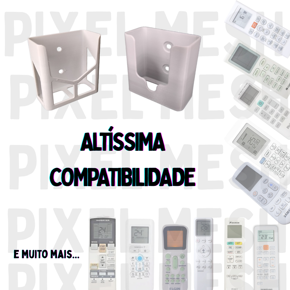 Modelos Disponíveis: VAZADO: Design leve e funcional, focado em custo benefício. REFORÇADO: Estrutura robusta com 2x mais resistência, garantindo máxima durabilidade, proteção e funcionalidade. REFORÇADO LARGO: Reforçado com medidas internas mais largas para controles "gordinhos" Compatibilidade Ampla Projetado para atender as marcas líderes do setor: LG, Samsung, Gree, Midea, Daikin, Elgin, Philco, Electrolux, Fujitsu e diversas outras! Montagem Facilitada: Fixação simples em superfícies verticais, já inclui fita 3M de alta aderência aplicada. Acabamento Superior: Fabricado em polímero termoplástico de alta resistência, totalmente impermeável e estável ao calor. Eficiência: Protege contra quedas e riscos, mantendo seu controle sempre ao alcance das mãos. RECOMENDAÇÕES PARA INSTALAÇÃO: Para garantir a máxima aderência, siga estas etapas: 1 - Higienize o local com álcool isopropílico. 2 - Pressione o suporte firmemente contra a superfície por alguns segundos. 3 - Aguarde o tempo de cura da fita antes de colocar peso. Seguimos os padrões de qualidade 3M. Envio imediato e garantia de qualidade, qualquer dúvida nos acione via chat :)