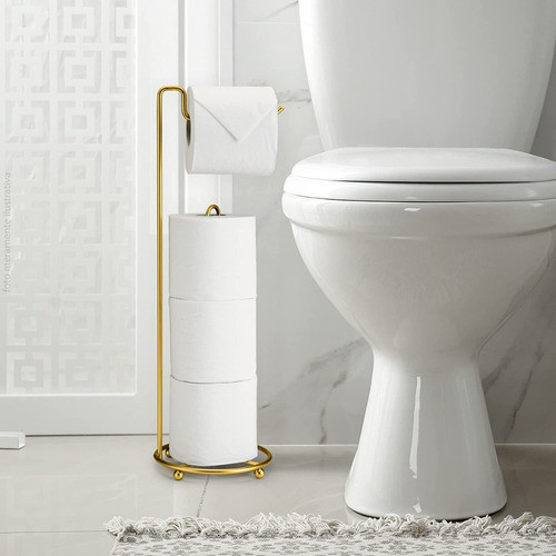 Suporte Porta Papel Higiênico 4 Rolos De Chão Banheiro Dourado