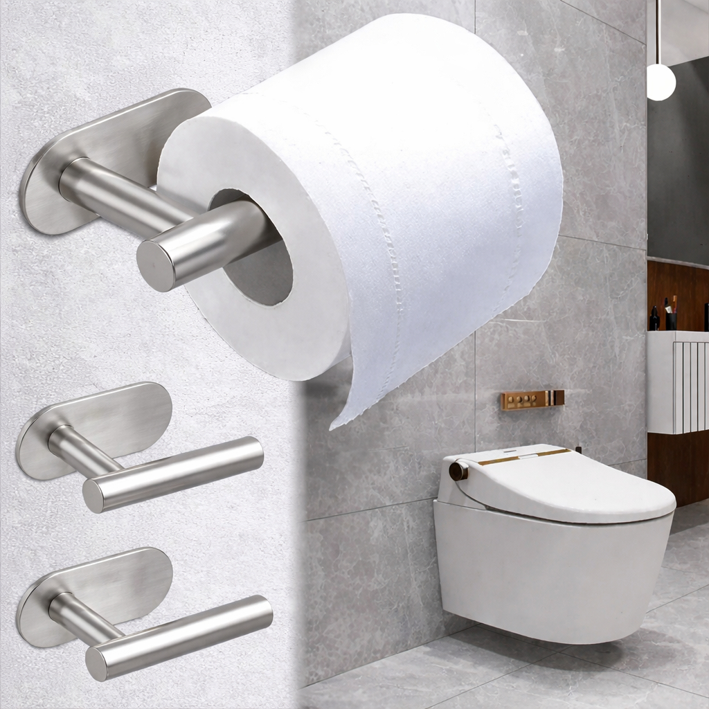 Suporte Porta Papel Higiênico Aço Inox Prateado De Parede Auto Adesivo