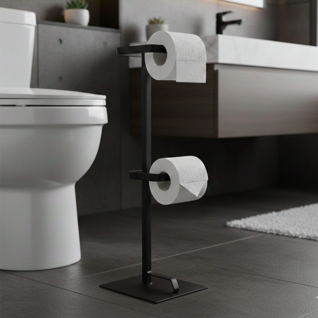 Suporte Porta Papel Higiênico Banheiro Moderno Parede E Chaõ Preto Prata Dourado