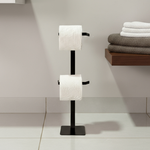 Suporte Porta Papel Higiênico De Chão Banheiro Aço Carbono 2 Rolos Preto Organização